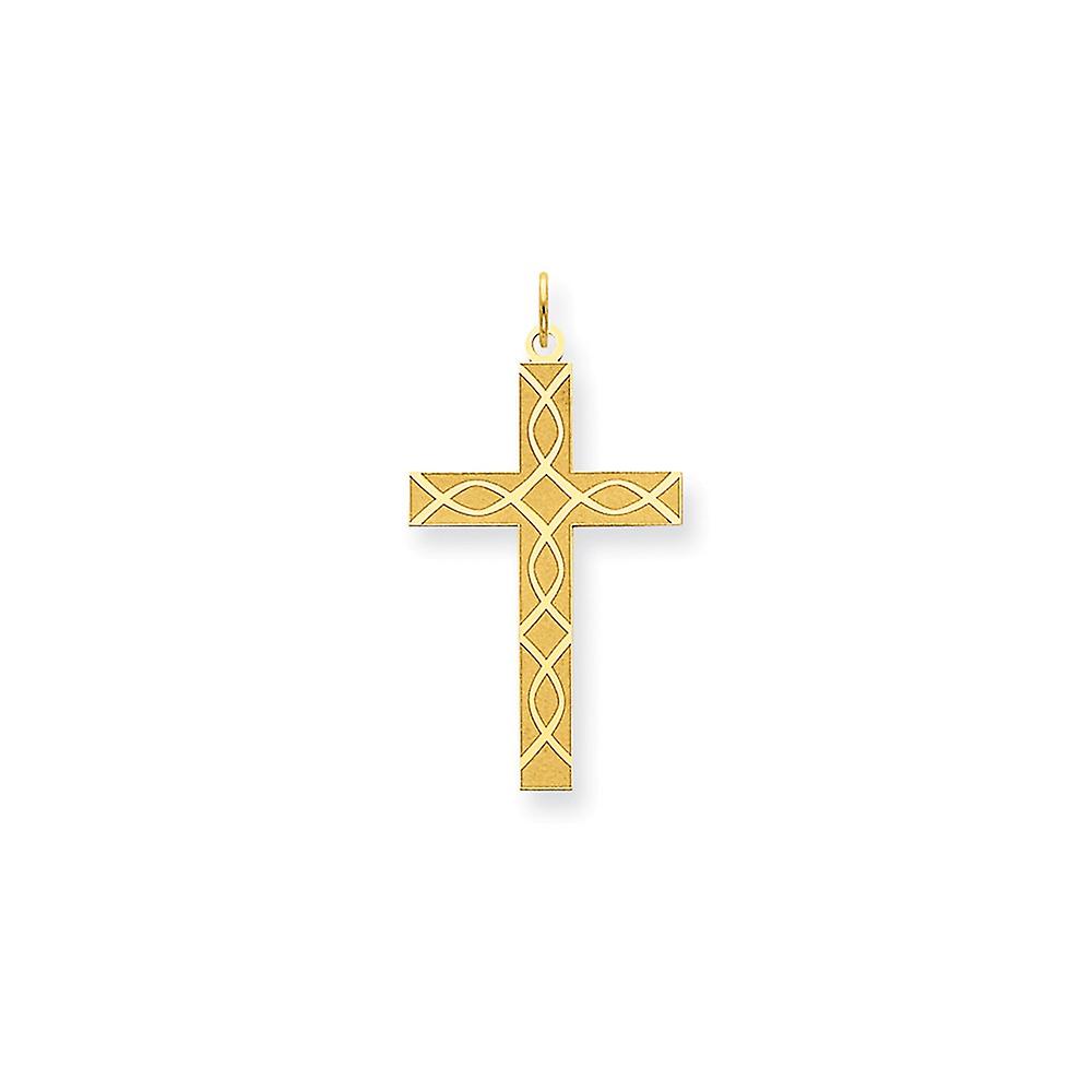 14k Yellow Gold Solid Laser Etched Polished back-Laser Designed Religious Faith Cross Pendant Necklace 40x21mm Wide-Pend