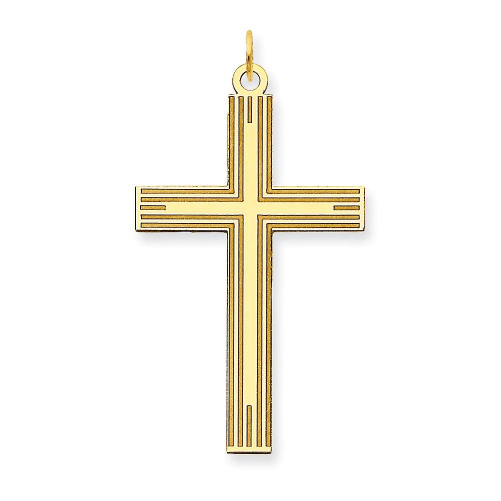 14k Yellow Gold Solid Laser cut Polished back-Laser Designed Religious Faith Cross Pendant Necklace 21.3x39.3mm-Pendant