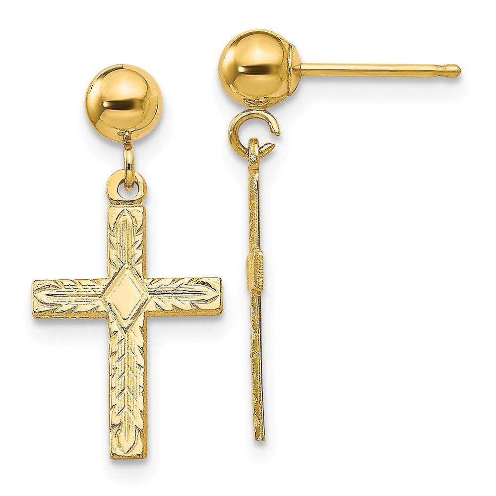 14k Yellow Gold Post Cross Earrings - Measures 18x10mm - .9 Grams in 14k Yellow Gold - Product Attributes: - Hollow - Polished and satin - Solid - - Width of Item: 10 mm - Length of Item: 21 mm - Earring Closure: Post & Push Back - Earring Type: Drop & Dangle - Finish: Polished - Feature: Solid -