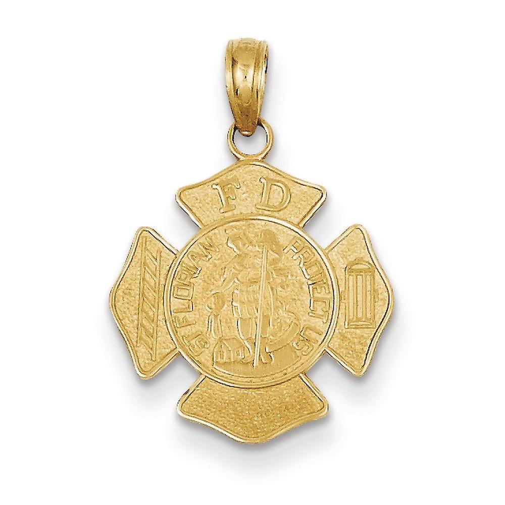 14k Yellow Gold Solid Not engraveable Polished Small St. Florian Badge Pendant Necklace 23x16mm-Pendant for Women