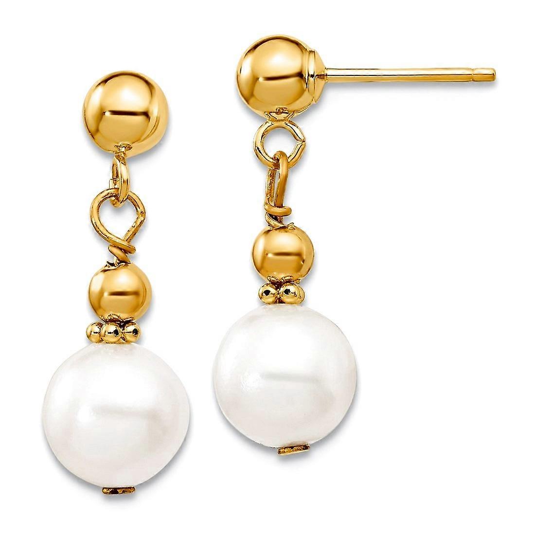 14k Yellow Gold Dangle (7 8mm) Semi round Freshwater Cultured Pearl Drop Post Earrings Stud Earring for Women