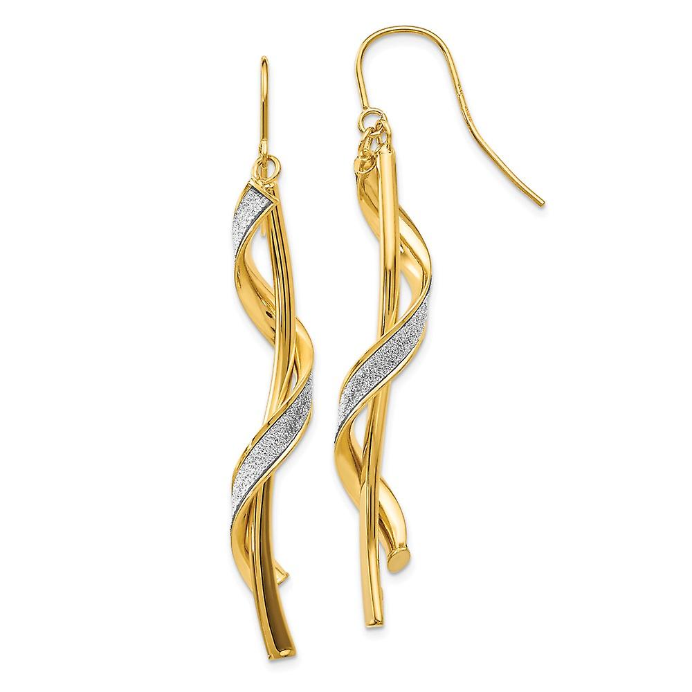 14k Yellow Gold Twisted Shepherd hook Polished Glitter Infused Spiral Long Drop Dangle Earrings 60x4mm Wide-Dangle Earri