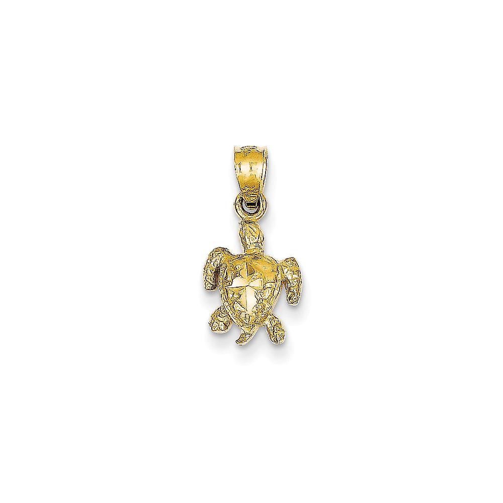 14k Yellow Gold Textured Turtle Pendant Necklace 20x8.1mm-Pendant for Women - .6 Grams