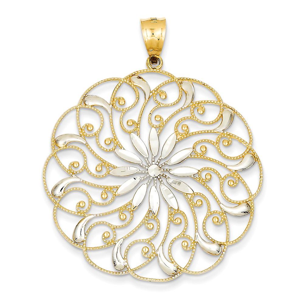 14k Yellow Gold Textured Polished and Rhodium Meridian Swirl Pendant Necklace 50x40mm Wide-Pendant for Women
