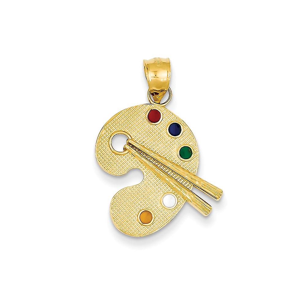 14k Yellow Gold Textured Polished Enameled Artist Palette Pendant Necklace 27.6x18.1mm-Pendant for Women