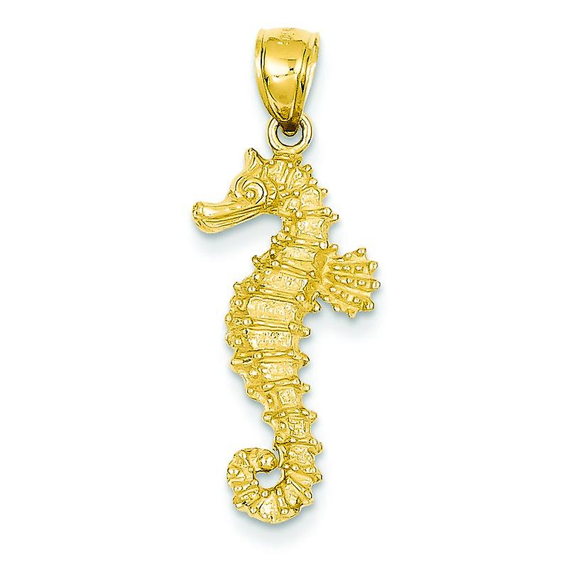 14k Yellow Gold Polished Open-Backed Seahorse Pendant - Measures 31x12mm - 1.4 Grams in 14k Yellow Gold - Product Attributes: - Open back - Textured - - Charm/Element Width: 12 mm - Width of Item: 12 mm - Charm/Element Length: 25 mm - Length of Item: 31 mm - Bail Length: 6 mm - Finish: Polished - Feature: Solid - - This Item Does Not Ship With a Chain