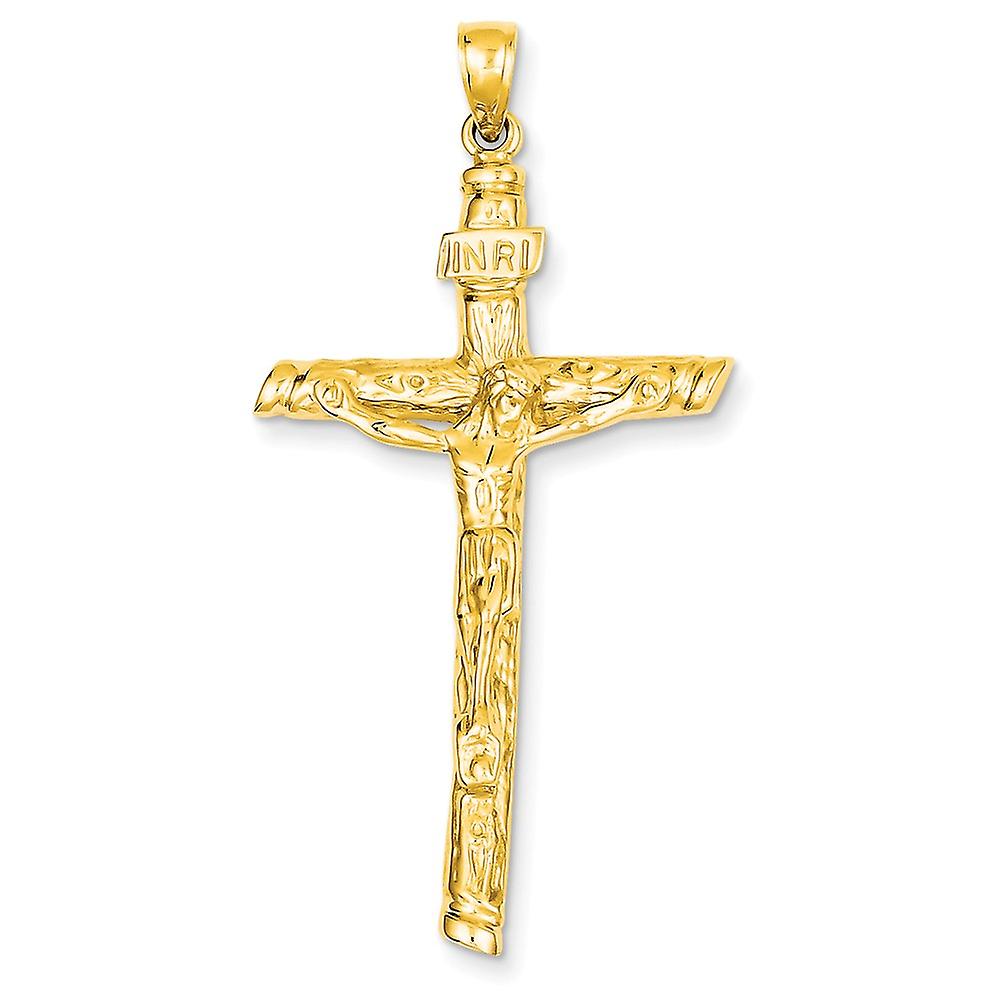 14k Yellow Gold Textured Polished Inri Crucifix Pendant Necklace 52x26mm Wide-Pendant for Women