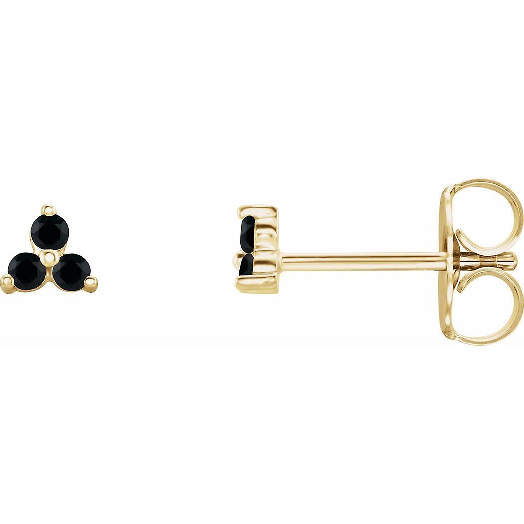14k Yellow Gold Natural Black spinel Round 2.5mm Friction Back Polished Three Stone Earring Stud-Earring for Women