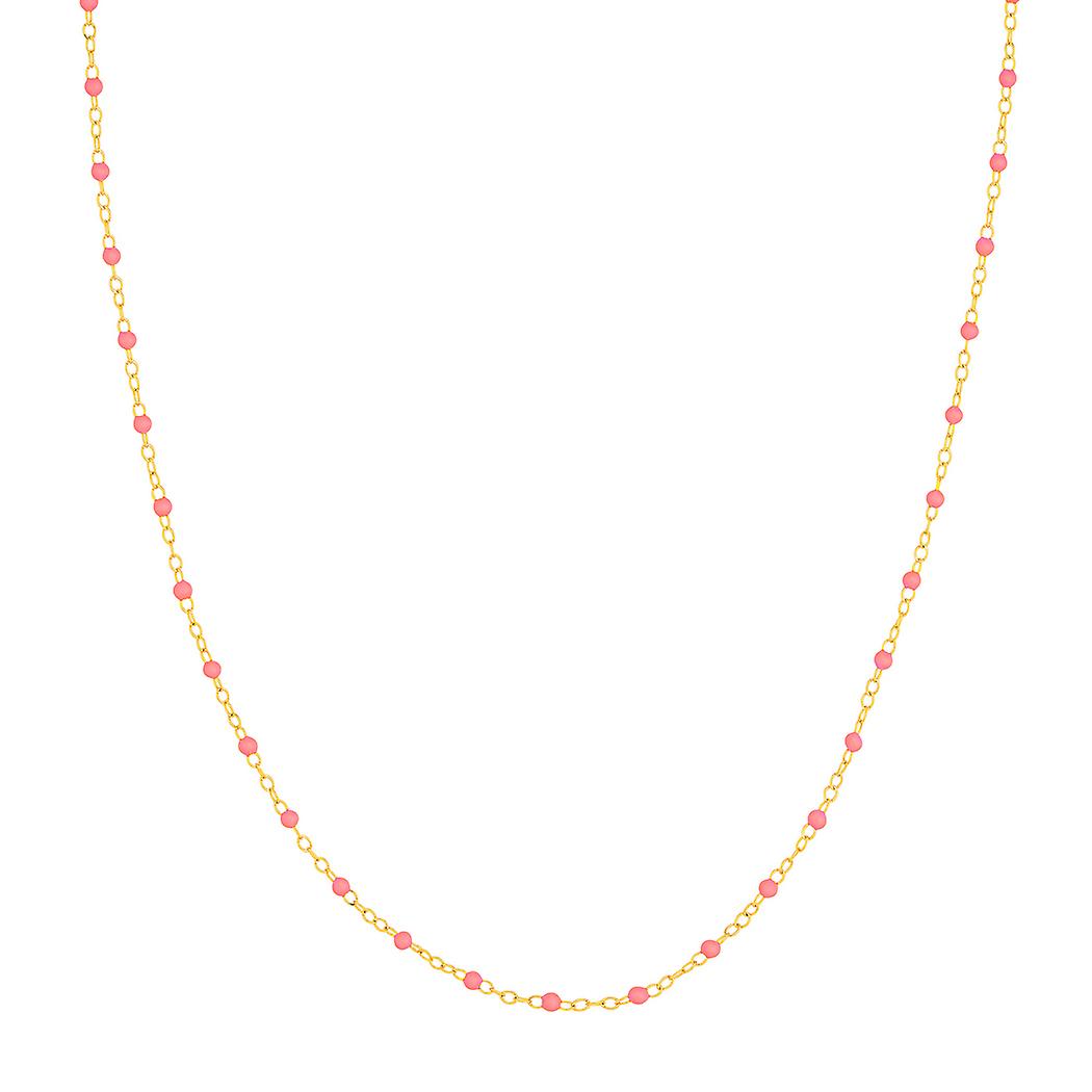 14k Yellow Gold Pink enamel Bead Chain Bracelet Adjustable With One Inch Extension 7.50 Inch Link-Bracelet for Women and