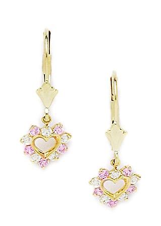 14k Yellow Gold Pink Cubic Zirconia Love Heart Drop Leverback Earrings 24x9mm Stud Earring for Women