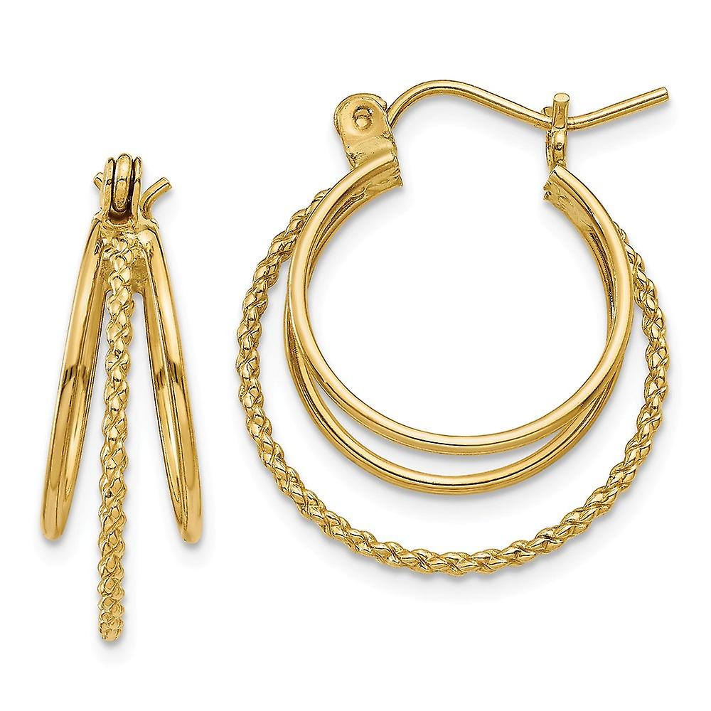 14k Yellow Gold Hinged post Polished and Textured Circle Hoop Earrings 19x18mm Wide 8mm Thick-Hoop Earring for Women