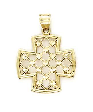 14k Yellow Gold Filigree Religious Faith Cross Pendant Necklace-Pendant for Women - 1.9 Grams