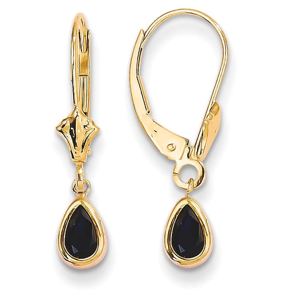 14k Yellow Gold Bezel Polished Leverback Sapphire Earrings September 23x4mm Wide Stud Earring for Women