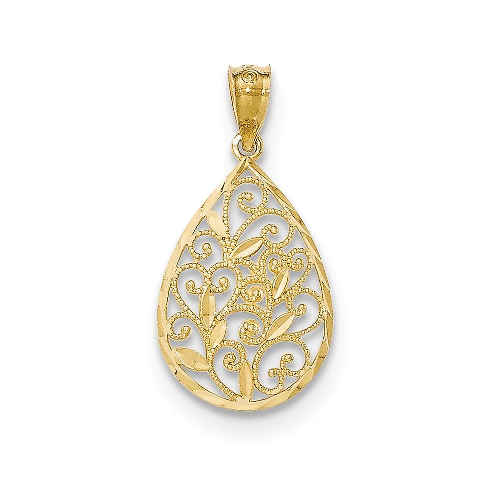 14k Yellow Gold Polished and Textured Small Filagree Teardrop Pendant Necklace-Pendant for Women