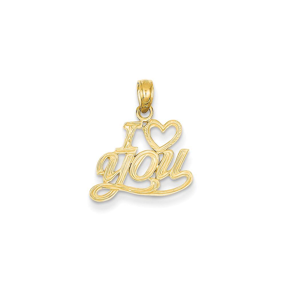 14k Yellow Gold Polished and Textured I Love Heart You Pendant Necklace 19x16mm Wide-Pendant for Women