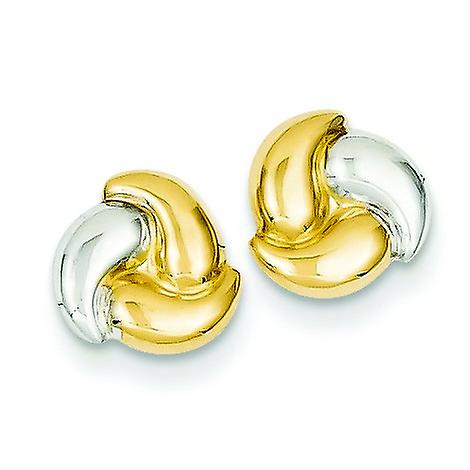 14k Yellow Gold Polished and Rhodium Fancy Post Earrings 8x8mm Stud Earring for Women