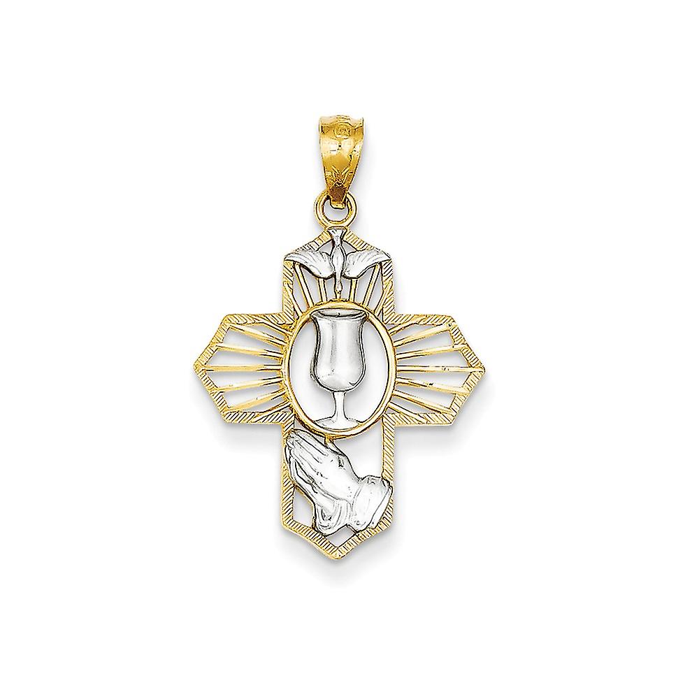 14k Yellow Gold Polished and Rhodium Religious Faith Cross Pendant Necklace 28.5x18.6mm-Pendant for Women