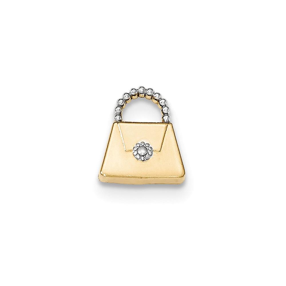 14k Yellow Gold Polished and Rhodium Purse Slide Pendant Necklace-Pendant for Women