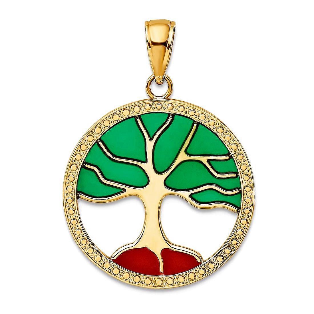 14k Yellow Gold Enameled Tree Of Life Pendant - Measures 29x20mm Wide - 1.9 Grams in 14k Yellow Gold - Product Attributes: - Polished - - Charm/Element Width: 20 mm - Width of Item: 20 mm - Charm/Element Length: 29 mm - Length of Item: 29 mm - Finish: Polished - Feature: Solid - Engravable: Not Recommended - - This Item Does Not Ship With a Chain
