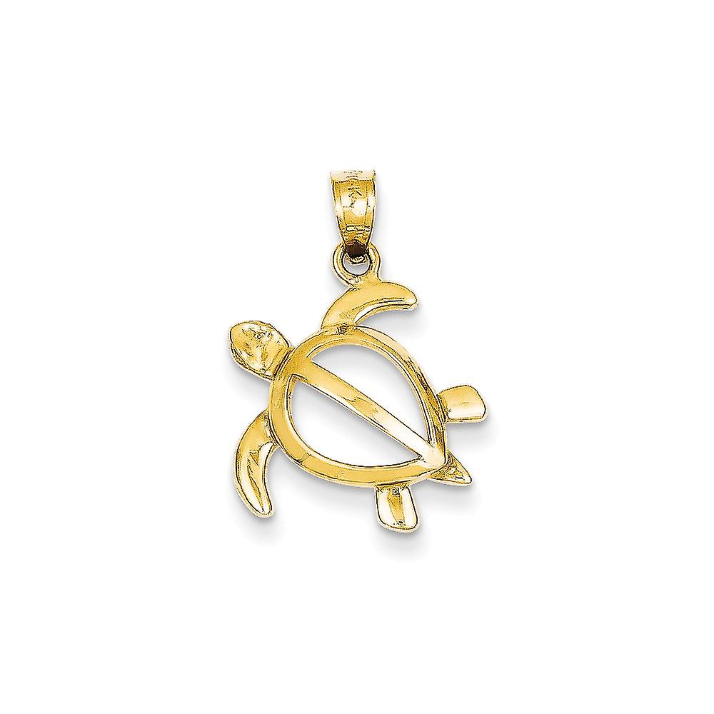 14k Yellow Gold Polished Open Turtle Pendant Necklace 22x21mm Wide-Pendant for Women - 1.2 Grams