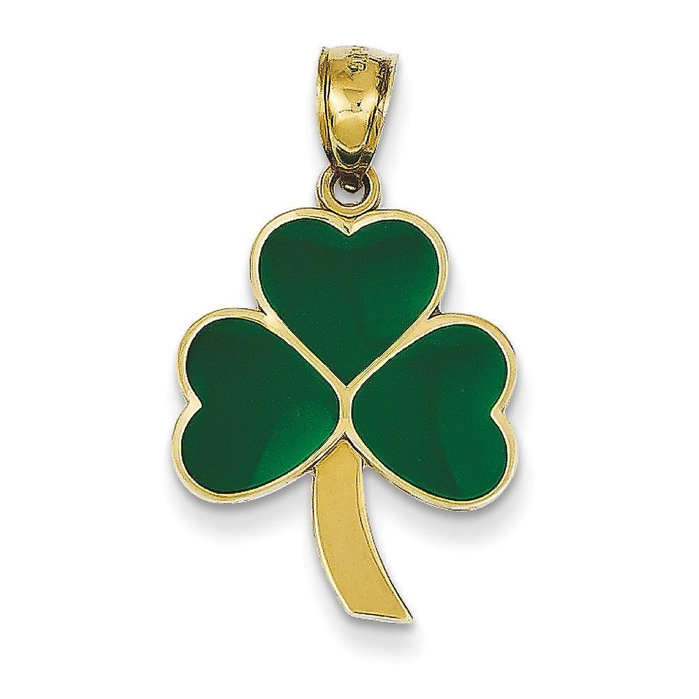 14k Yellow Gold Polished Green Enameled Shamrock Pendant Necklace 28x15mm-Pendant for Women