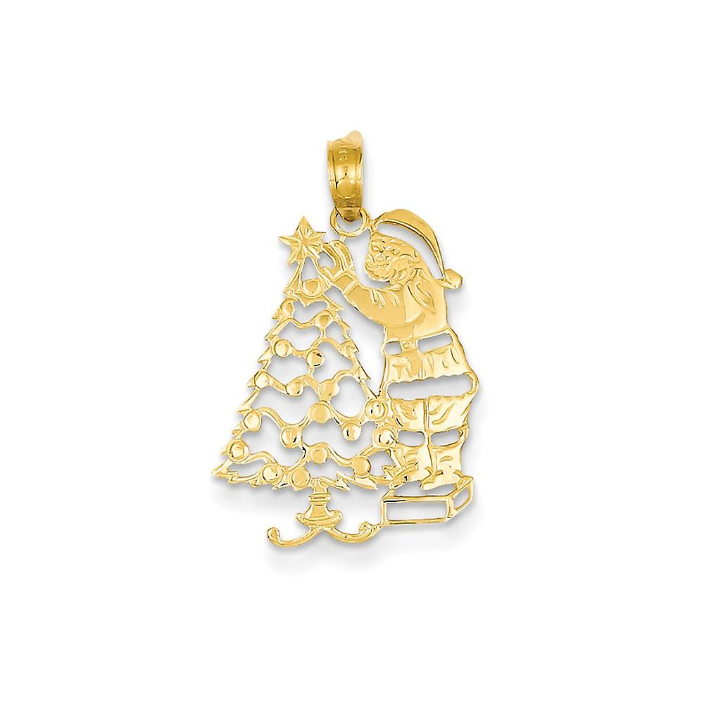 14k Yellow Gold Polished Christmas Tree and Santa Pendant Necklace 24.9x15.4mm Wide-Pendant for Women