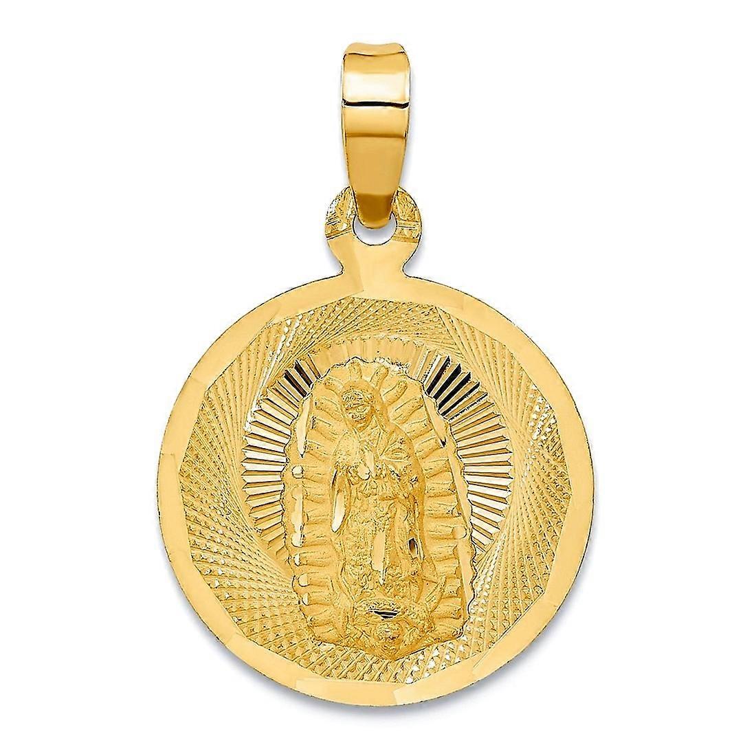 14k Yellow Gold Polished and satin-Polished and Sparkle Cut Lady Of Guadalupe Circle Pendant Necklace 24x16.75mm Wide-Pe