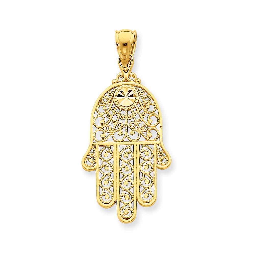 14k Yellow Gold Polished Sparkle Cut Filigree Chamseh Pendant Necklace 25x14mm-Pendant for Women