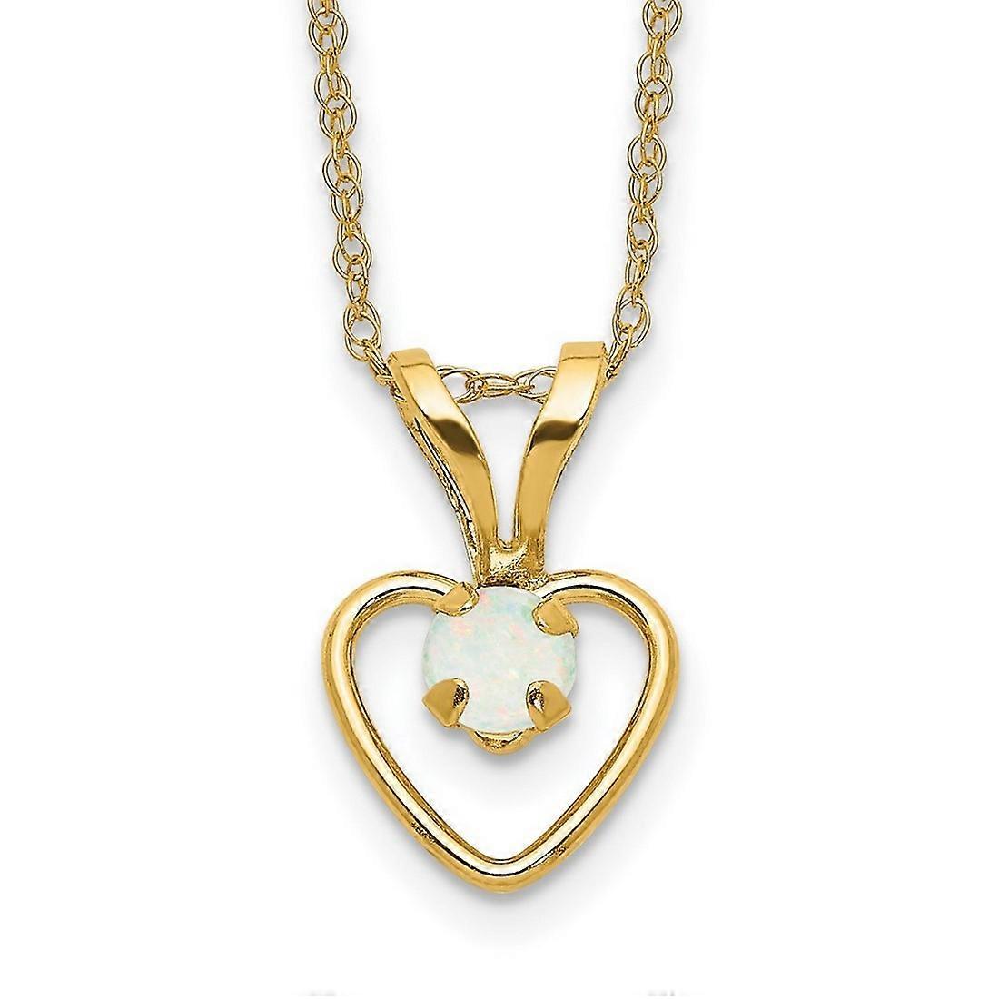 14k Yellow Gold Polished Spring-Ring 3mm Simulated Opal Love Heart Pendant With Chain 15 Inch 10x6mm Chain Necklace
