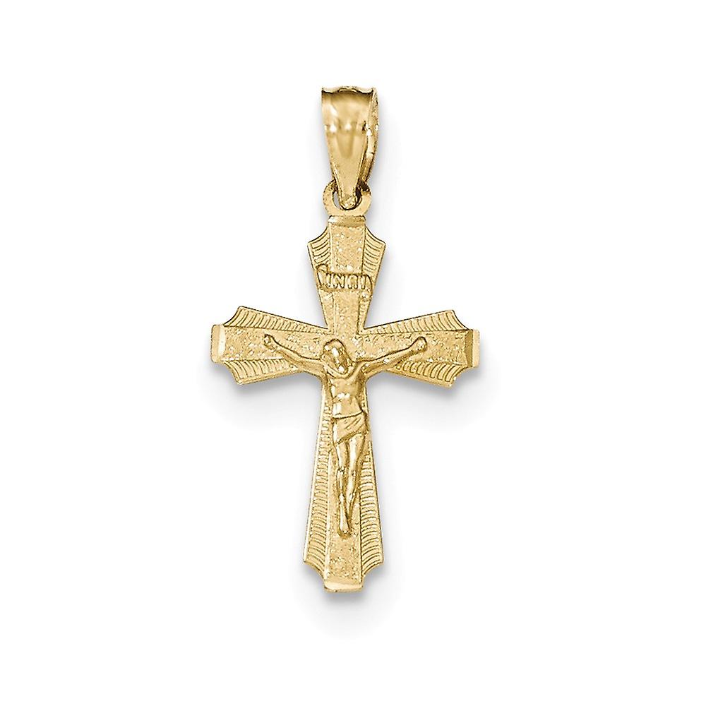 14k Yellow Gold Polished Small Passion Crucifix Pendant - Measures 26x13.5mm Wide - in 14k Yellow Gold - Product Attributes: - Textured - Textured back - - Charm/Element Width: 13.5 mm - Width of Item: 13.5 mm - Charm/Element Length: 20 mm - Length of Item: 26 mm - Bail Length: 5 mm - Finish: Polished - Feature: Solid - - This Item Does Not Ship With a Chain