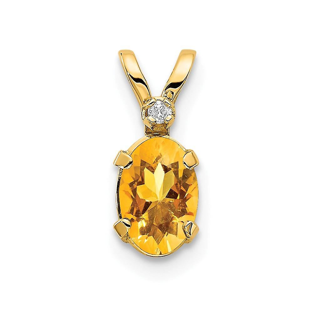 14k Yellow Gold Polished Diamond and Citrine Pendant Necklace 12x4.5mm Wide-Pendant for Women