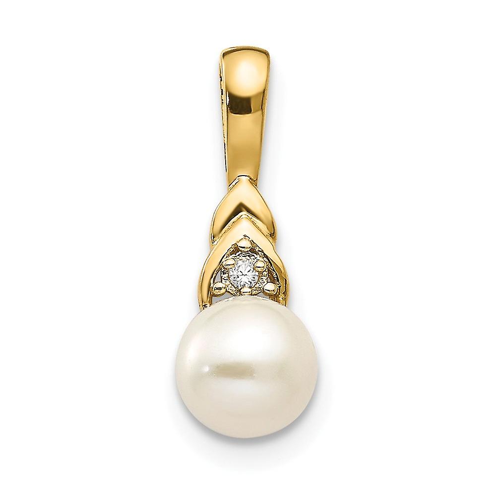 14k Yellow Gold Polished Diamond and Freshwater Cultured Pearl Pendant Necklace 16x6mm Wide-Pendant for Women