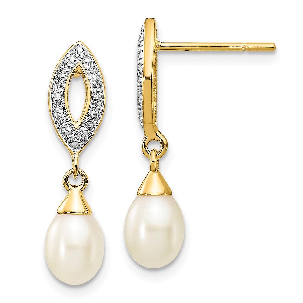 14k Yellow Gold Polished Diamond and Freshwater Cultured Pearl Post Long Drop Dangle Earrings 22x6mm Wide-Dangle Earring