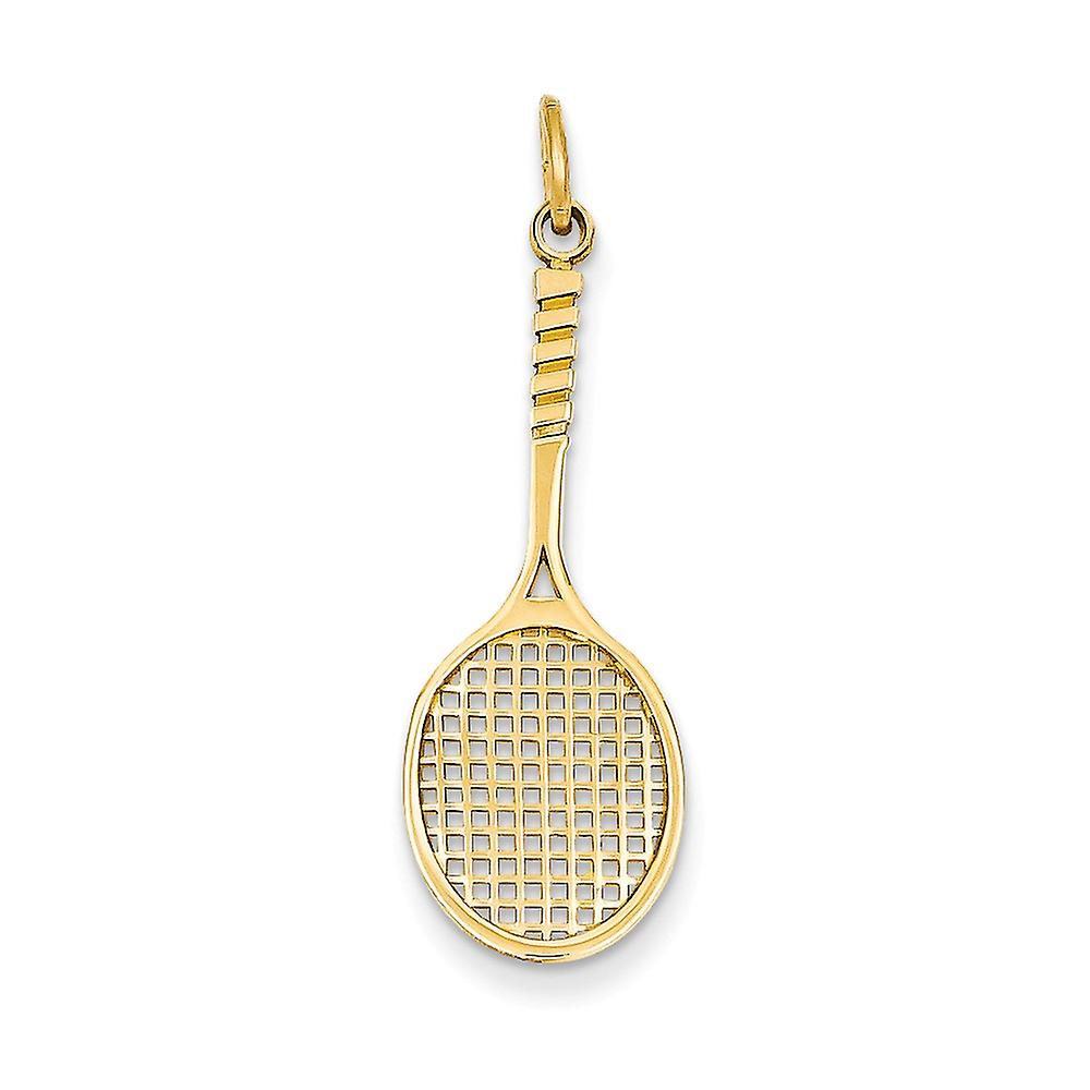 14k Yellow Gold Polished Tennis Racquet Charm 35.3x11.7mm Pendant Necklace for Women - 1.1 Grams