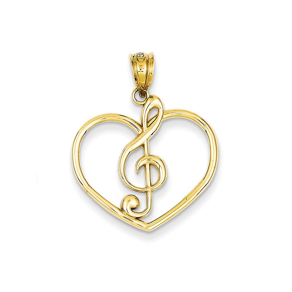 14k Yellow Gold Polished Treble Clef In Love Heart Charm 21x22mm Wide Pendant Necklace for Women