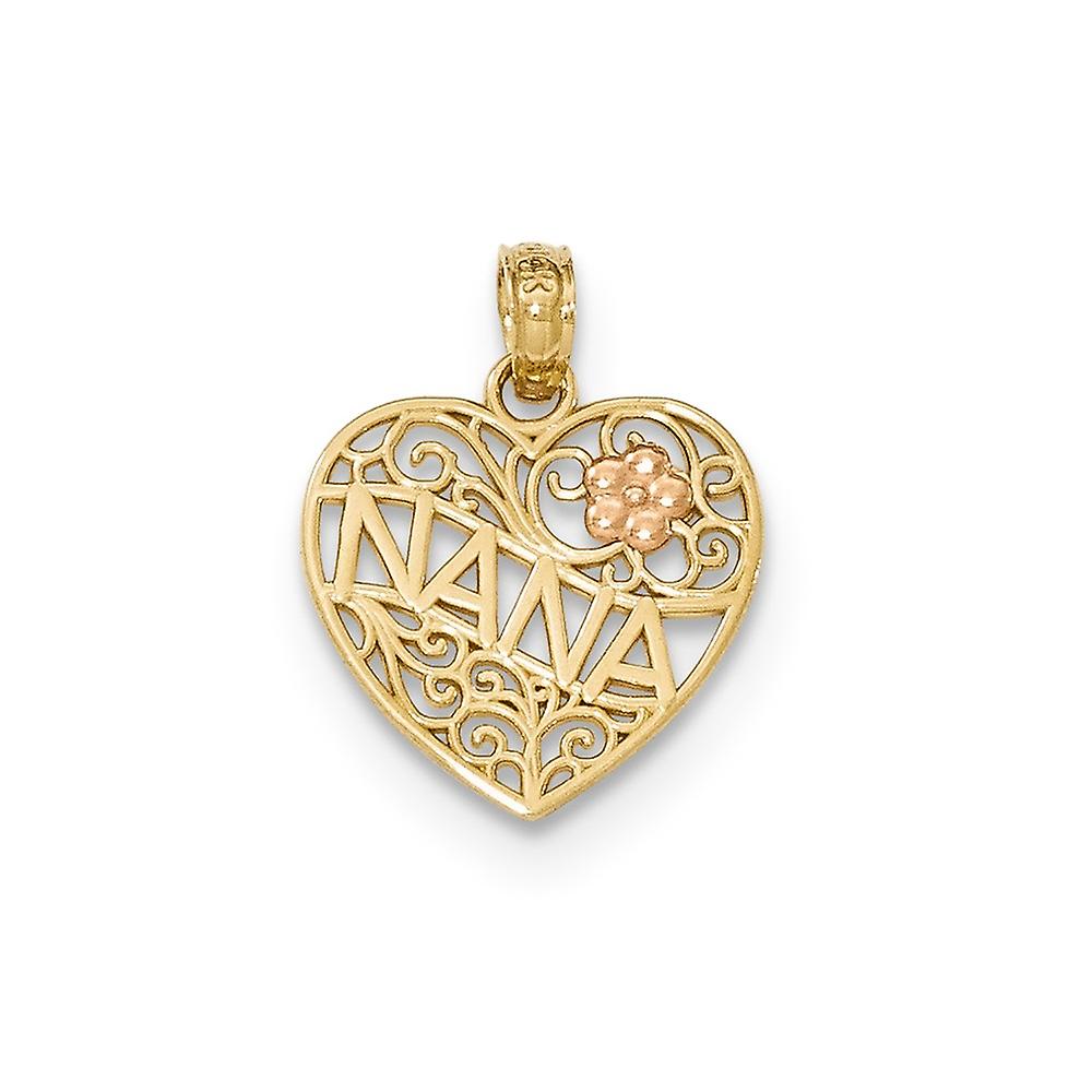 14k Yellow Gold Polished Nana With Pink Flower Love Heart Pendant Necklace 14.9mm Wide-Pendant for Women