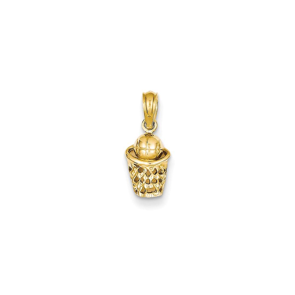 14k Yellow Gold Polished Basketball With Net Pendant Necklace 9.3x6.9mm Wide 3.4mm Thick-Pendant for Women
