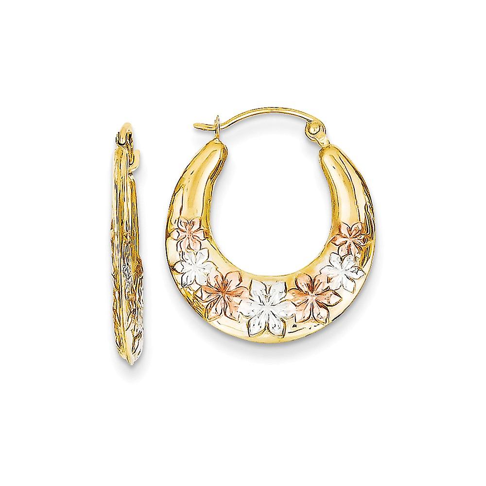 14k Yellow Gold Polished Hinged post and White And Rose Rhodium Hollow Flowers Hoop Earrings 22x19mm Wide 3mm-Hoop Earri