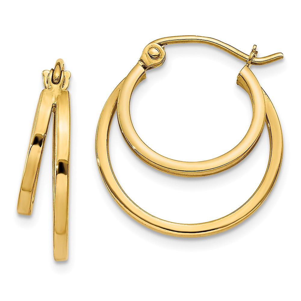 14k Yellow Gold Polished Hinged post Double Hoop Earrings 17x17mm Wide 4mm Thick-Hoop Earring for Women
