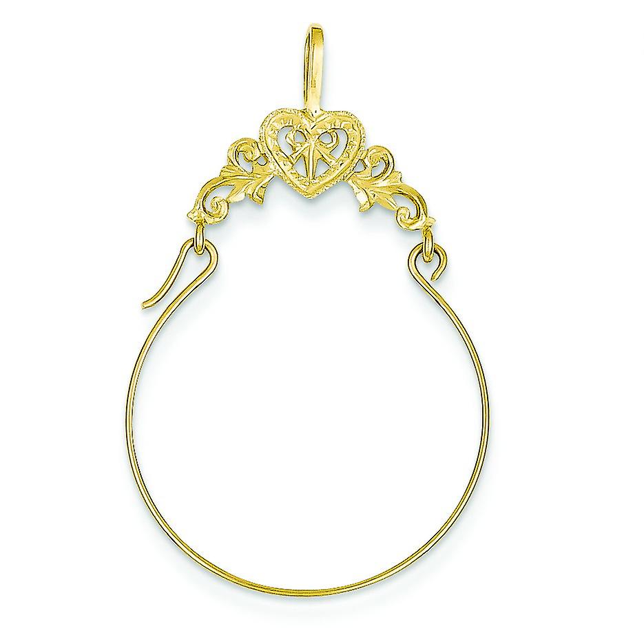 14k Yellow Gold Polished Filigree Love Heart Charm Holder 35x22mm Wide Pendant Necklace for Women