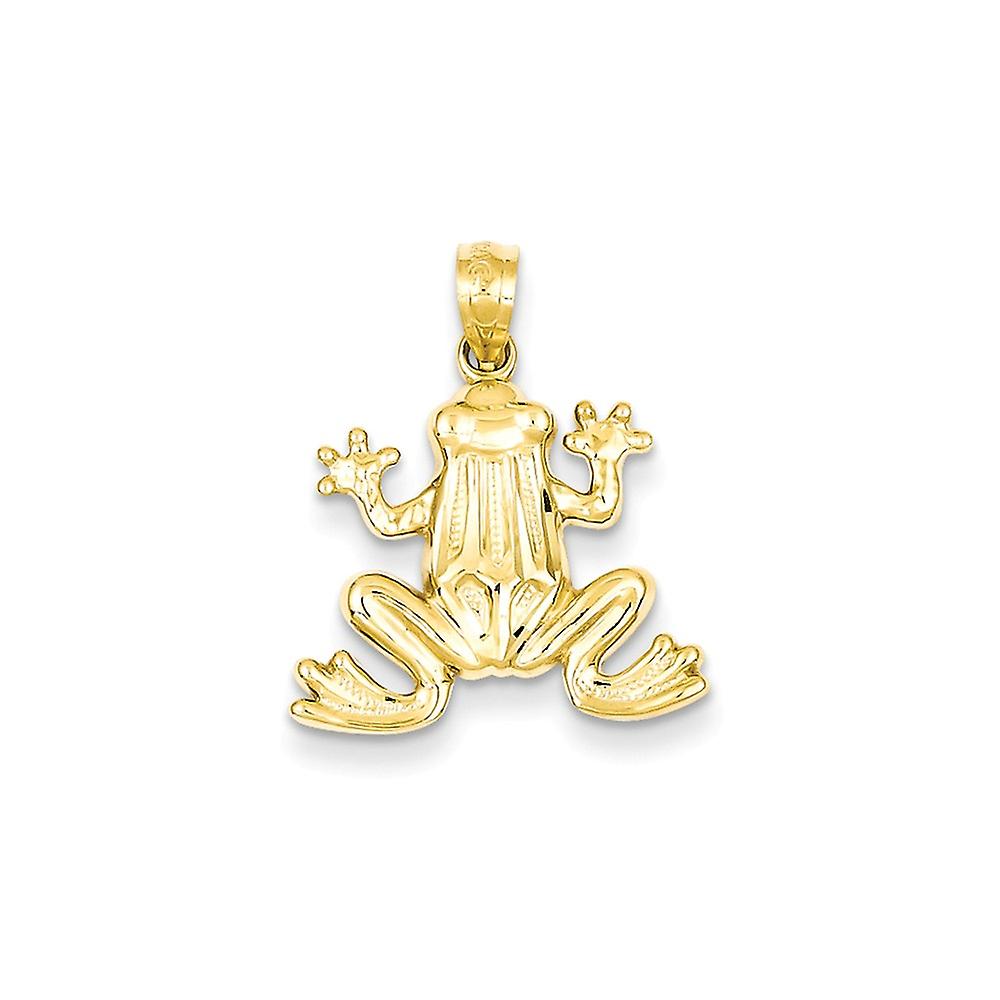 14k Yellow Gold Polished Frog Pendant Necklace 23x18mm Wide-Pendant for Women - .9 Grams