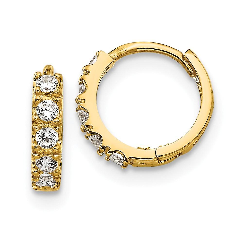 14k Yellow Gold Polished Post Cubic Zirconia Hinged Hoop Earrings 9x3mm Wide-Hoop Earring