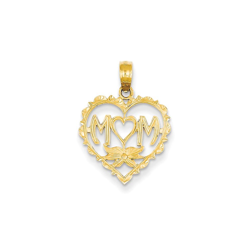 14k Yellow Gold Polished Mom In Love Heart With-Heart Shaped O Pendant Necklace 19.9x16.1mm Wide-Pendant for Women