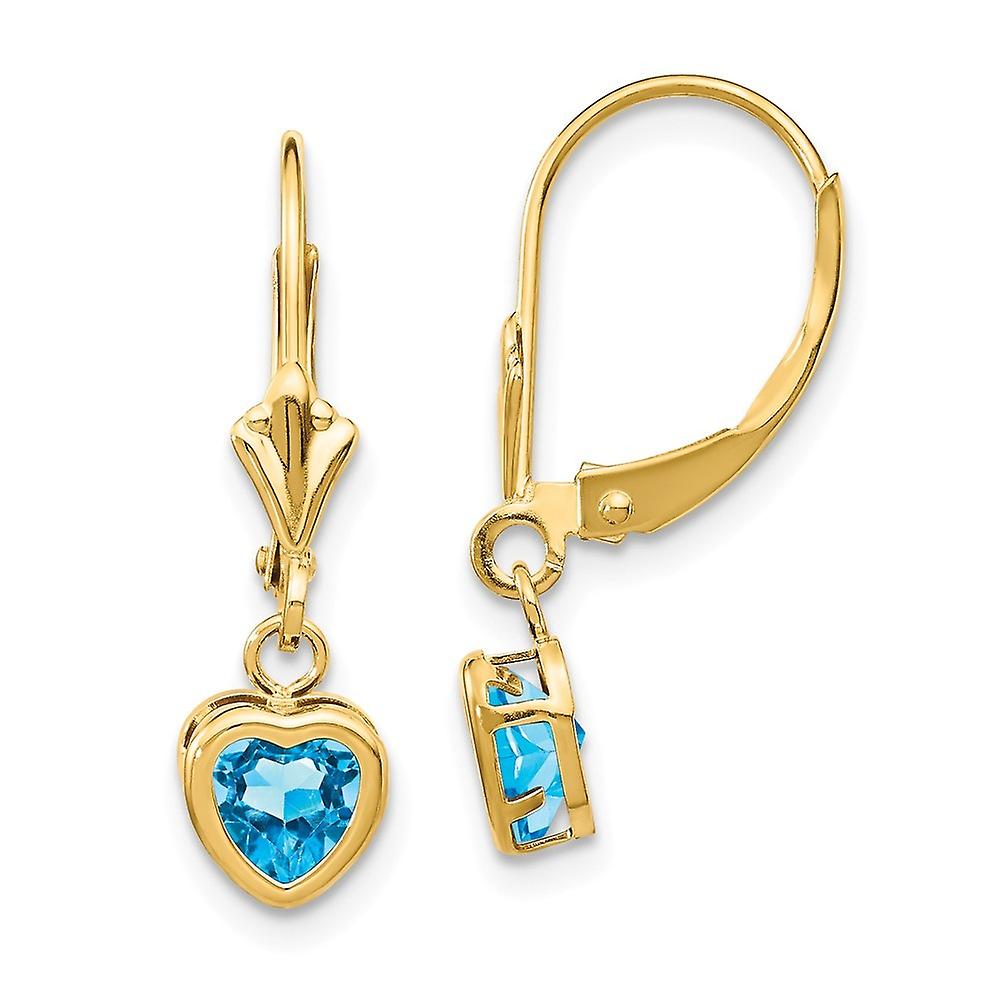 14k Yellow Gold Polished Leverback 5mm Love Heart Blue Topaz Earrings 23x6mm Wide Stud Earring for Women