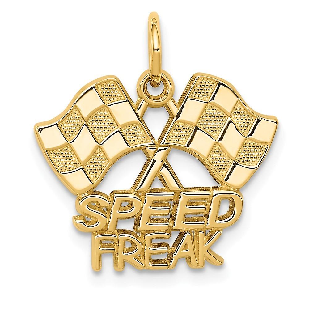 14k Yellow Gold Polished Racing Flags with Speed Freak Charm 20x18mm Wide Pendant Necklace for Women