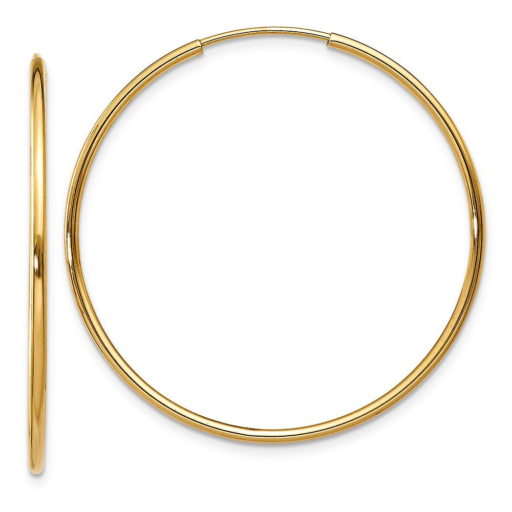 14k Yellow Gold Polished Hollow tube 1.25mm Endless Hoop Earrings 32x30mm Wide 1.25mm Thick-Hoop Earring for Women