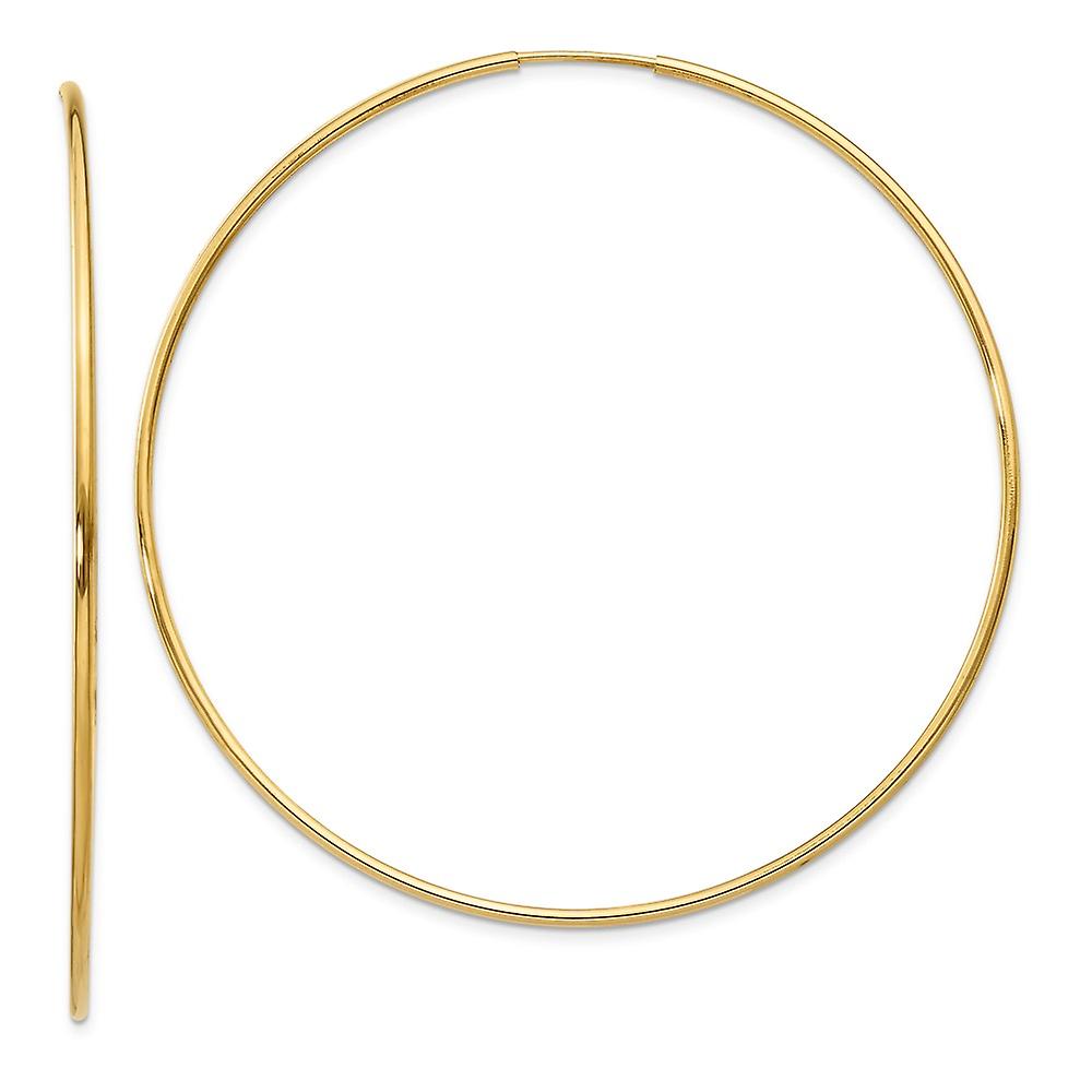 14k Yellow Gold Polished Hollow tube 1.25mm Endless Hoop Earrings 55x58mm Wide 1.25mm Thick-Hoop Earring for Women