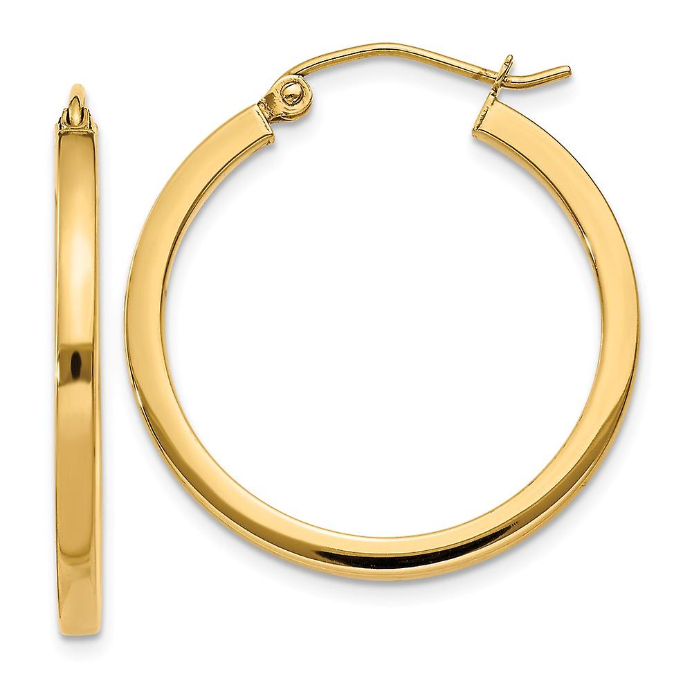 14k Yellow Gold Polished Hollow tube 2mm Square-Tube Hoop Earrings 25x25mm-Hoop Earring for Women