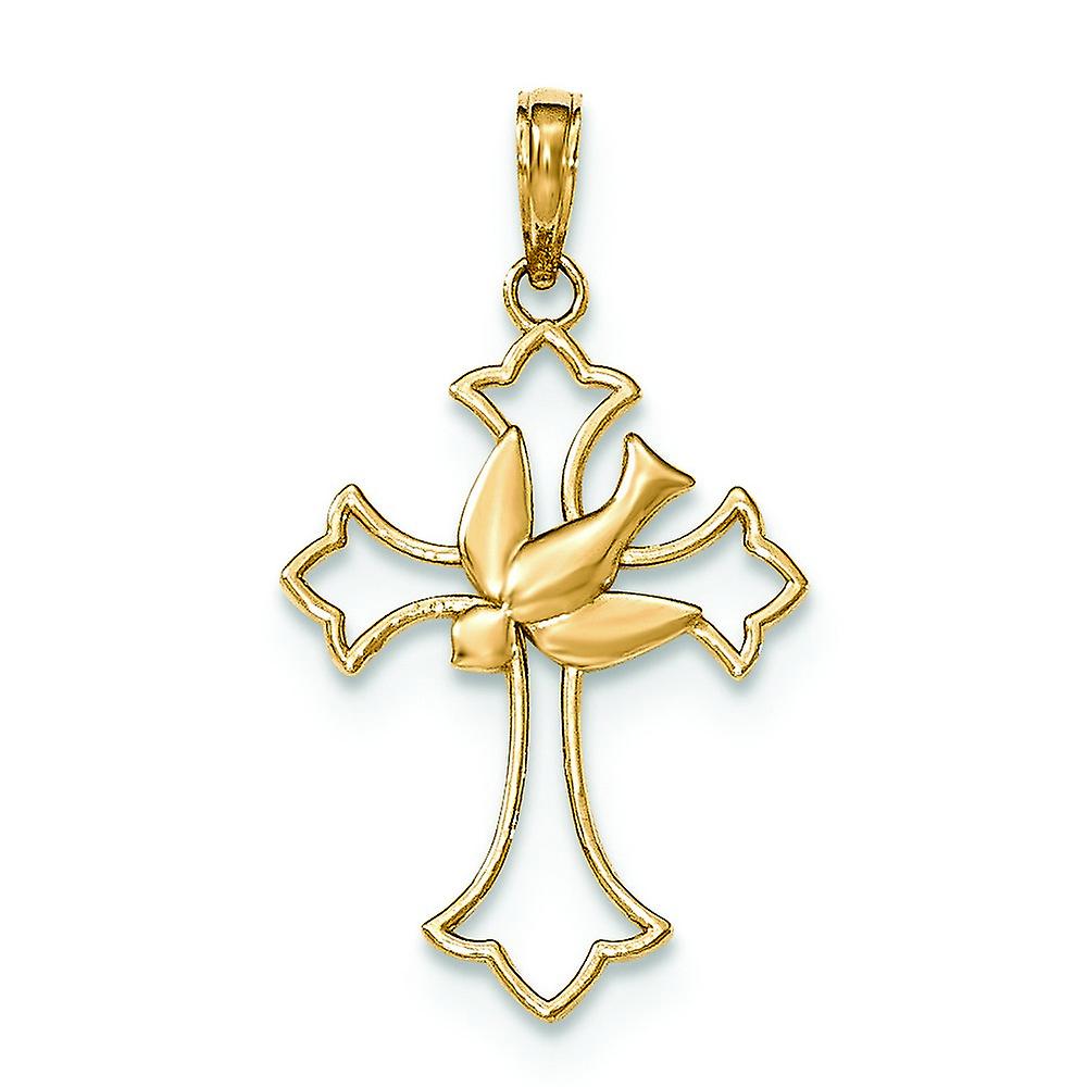 14k Yellow Gold Polished Religious Faith Cross With Dove Pendant Necklace 22x18mm-Pendant for Women