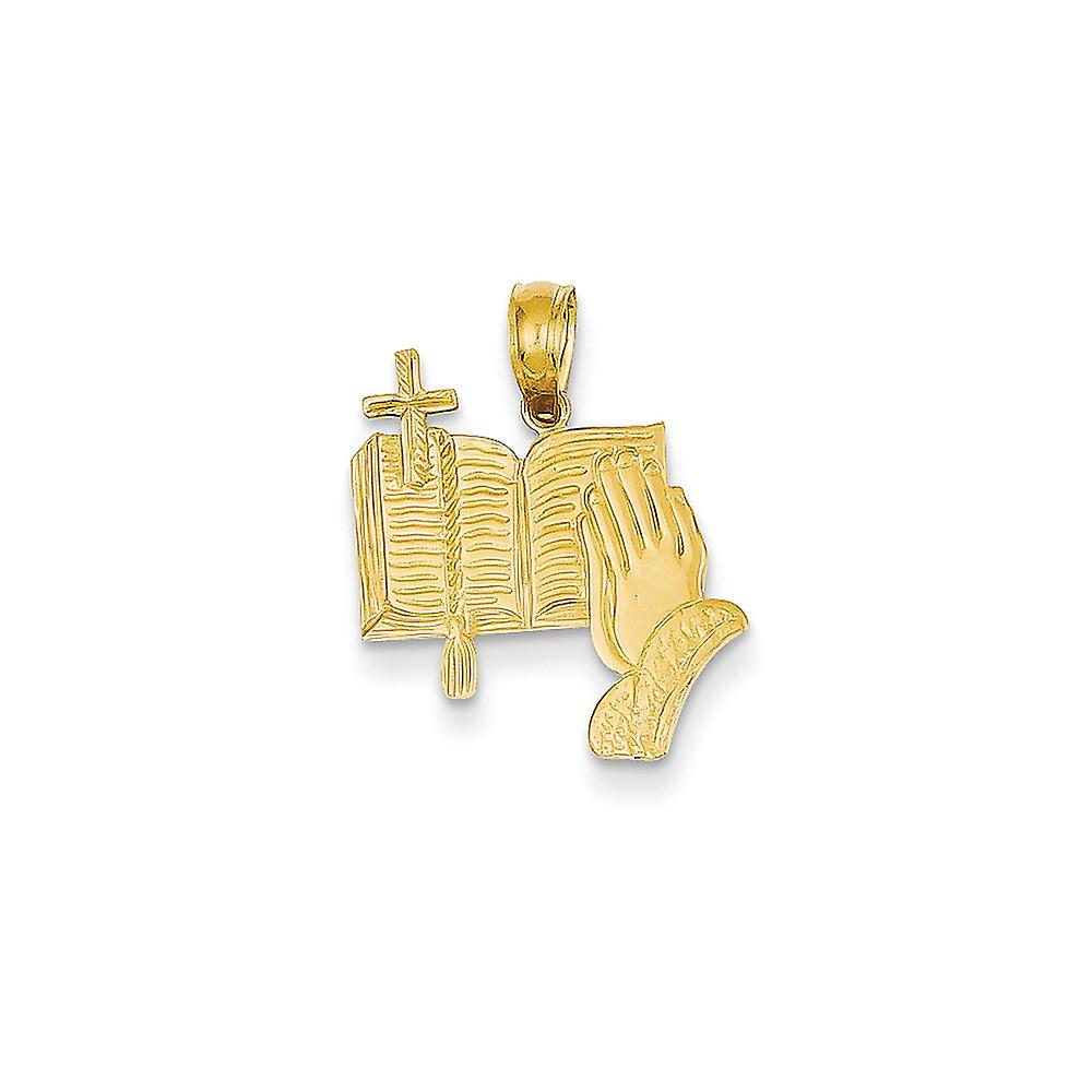 14k Yellow Gold Polished Bible Praying Hands And Religious Faith Cross Pendant Necklace 20x16mm Wide-Pendant for Women